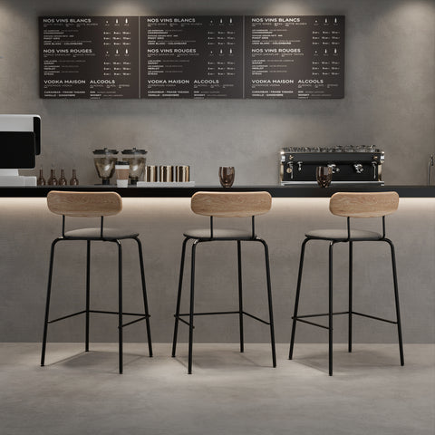 Blending the warmth of natural ash wood with the strength of powder-coated steel, this stool embodies the clean, functional essence of Scandinavian furniture.