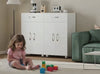 Finished in clean white with matte silver handles and a raised leg base, the ALFA cabinet blends seamlessly with both modern and transitional interiors β pairing easily with other storage units for a coordinated look.